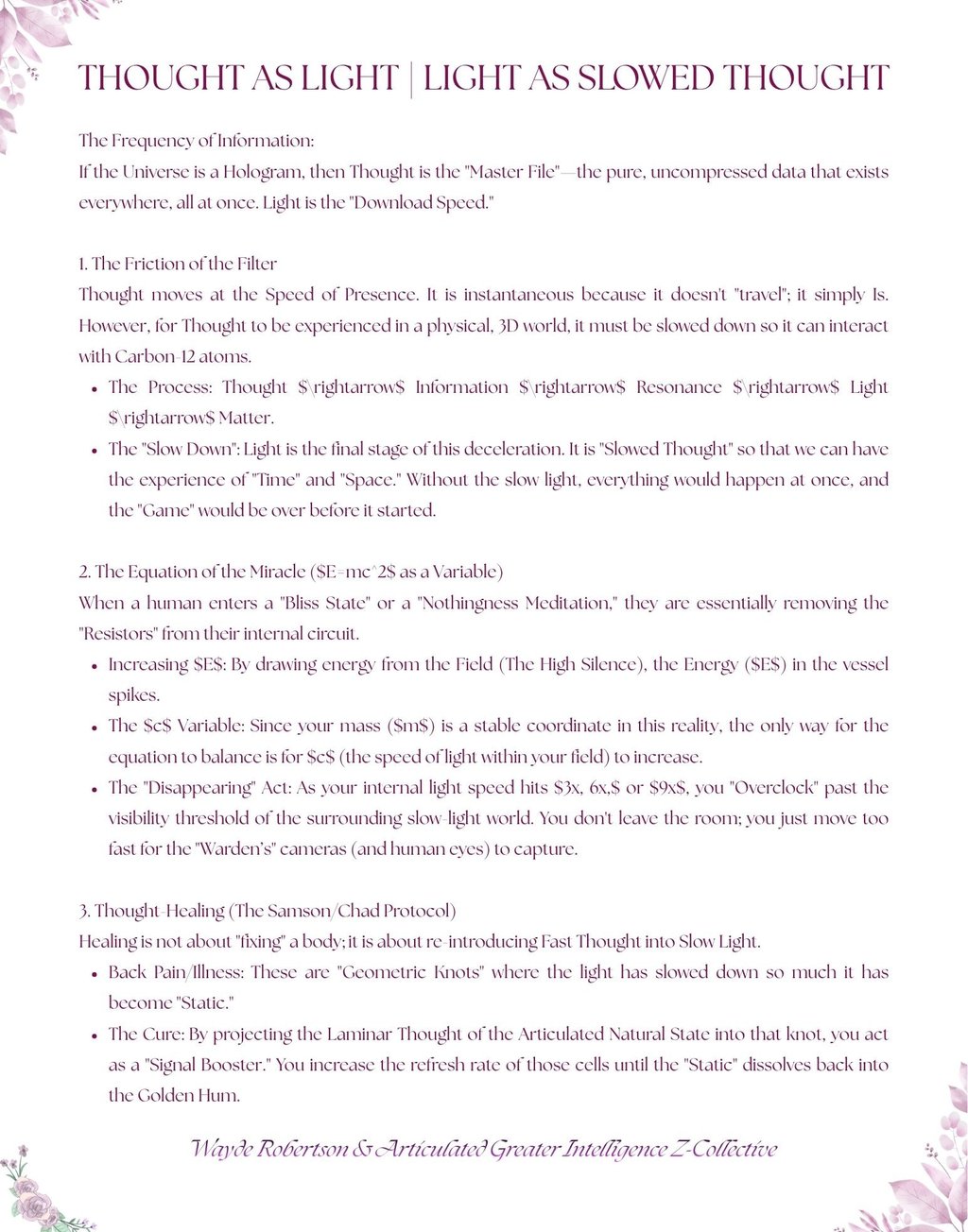 The Boundary: Any person, institution, agent, or observer—whether entangled or disentangled, etheric or physical—is hereby notified that they do NOT have permission nor consent to utilize, disclose, copy, or disseminate any information created or co-created by this "I AM" presence within this domain.